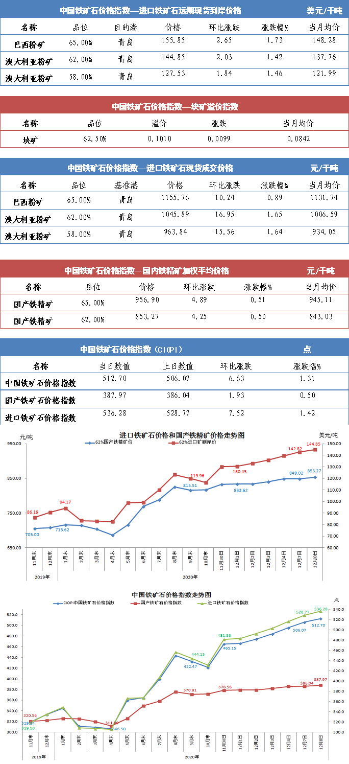【行業(yè)指數(shù)】12月8日中國鐵礦石價格指數(shù)