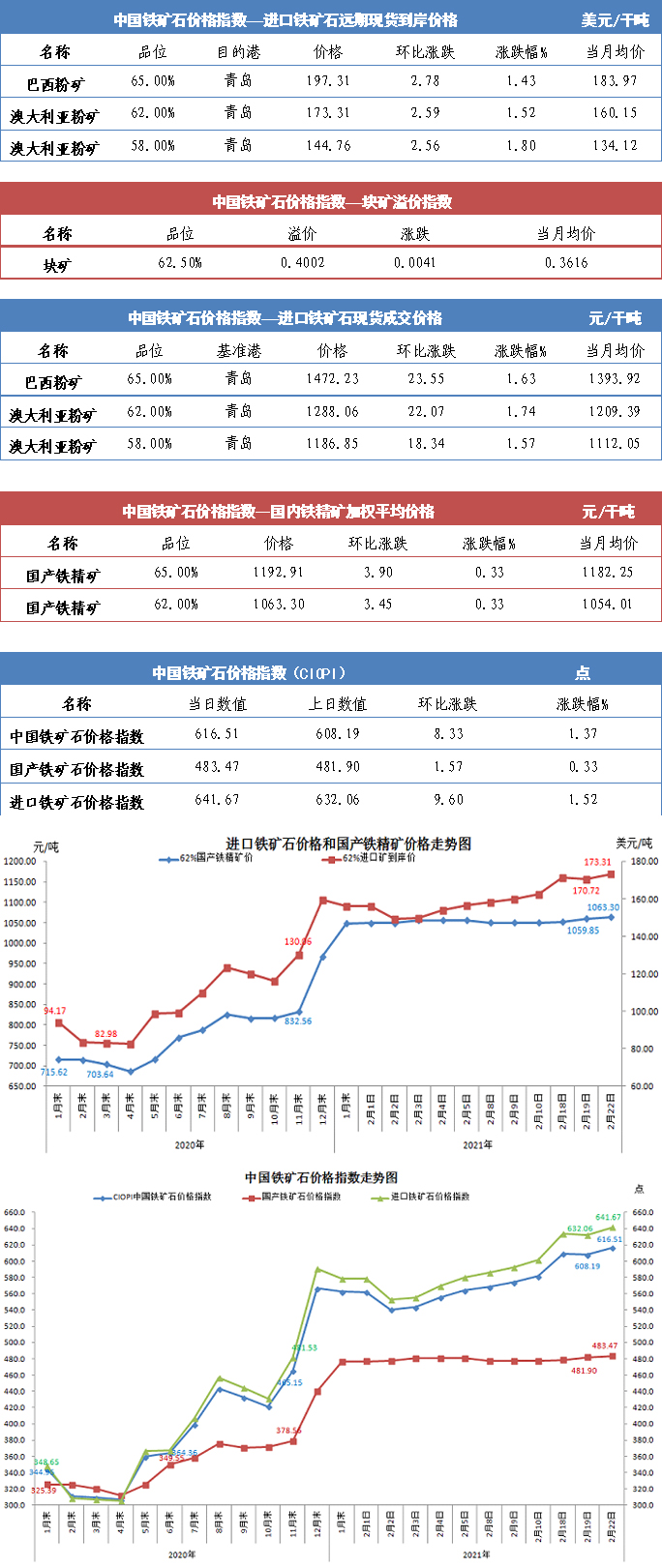 【行業(yè)指數(shù)】2月22日中國(guó)鐵礦石價(jià)格指數(shù)