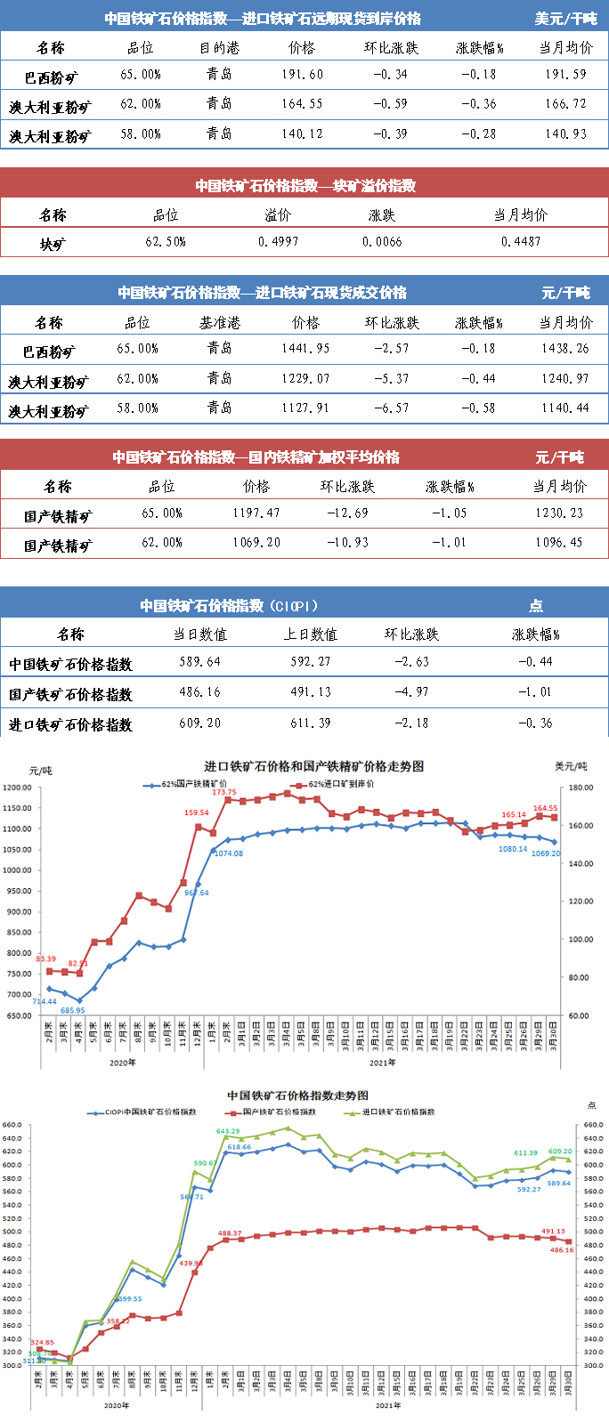 【行業指數】3月30日中國鐵礦石價格指數