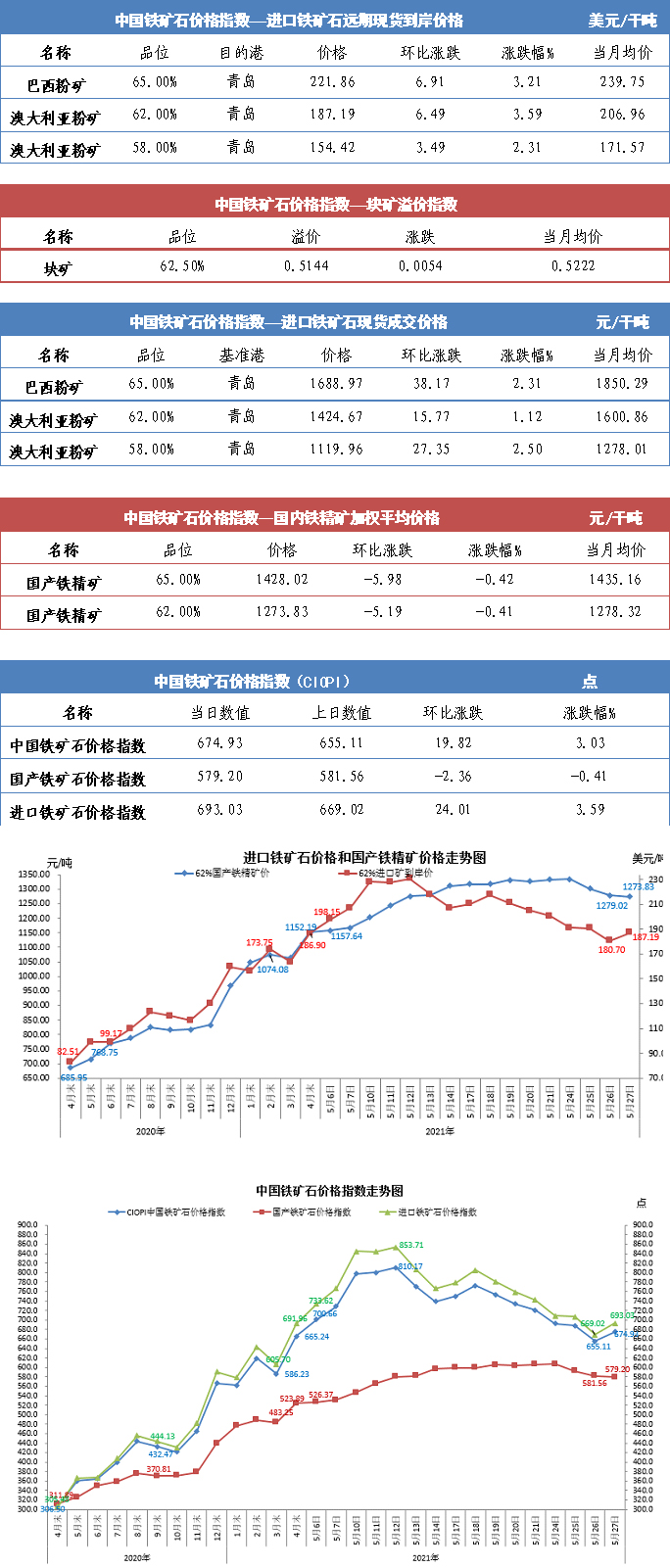 【行業(yè)指數(shù)】5月27日中國(guó)鐵礦石價(jià)格指數(shù)
