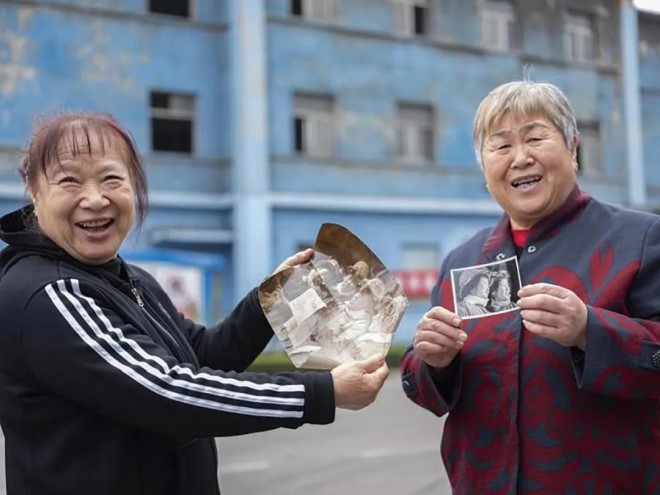 右圖為2020年魏光紅(左)和工友段元琴在特鋼事業(yè)部建廠55周年再次回到老廠房時(shí)的合影。(朱甲鵬 攝)