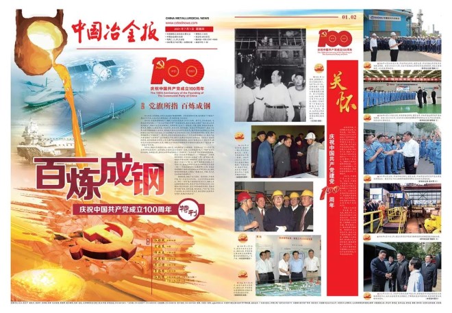 獵獵紅旗,插遍了大江南北。我們深知,中國共產黨,是一個永不止步的黨。立足百年華誕的新起點、“兩個一百年”奮斗目標的歷史交匯點,鋼鐵工業也將緊跟黨的步伐,重溫百年奮斗的恢弘史詩,以如磐初心踐行新使命,堅定不移加強黨的領導,勇挑實現“雙碳”目標、創新發展、智能制造、嚴控產能、優化產業布局、加大資源開發力度、推進國際化進程等歷史重擔,砥礪前行再出發!