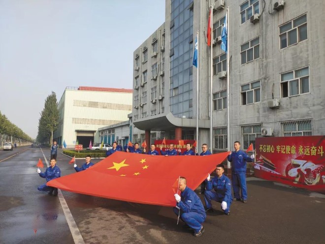 圖為河鋼宣鋼二鋼軋廠黨委開展向國旗獻(xiàn)禮活動(dòng)。(河鋼宣鋼供圖)