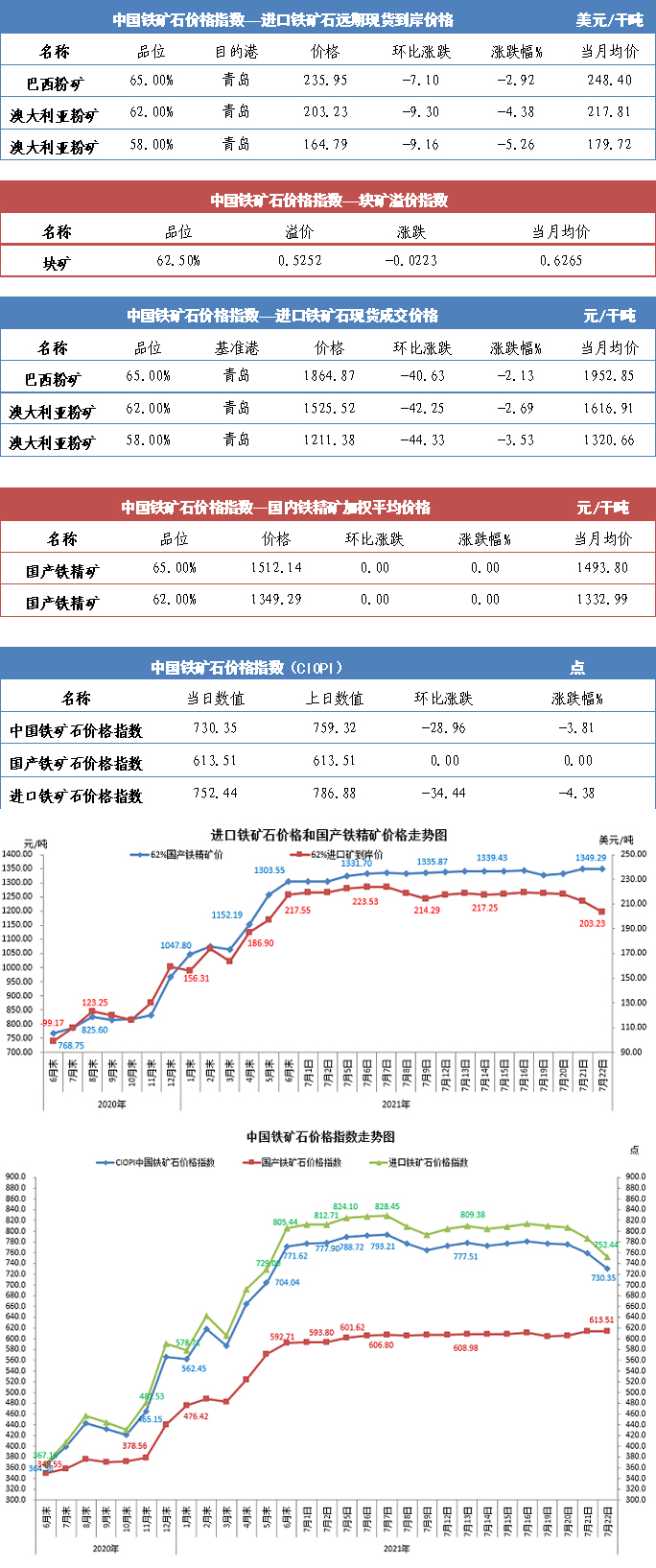 【行業(yè)指數】7月22日中國鐵礦石價格指數