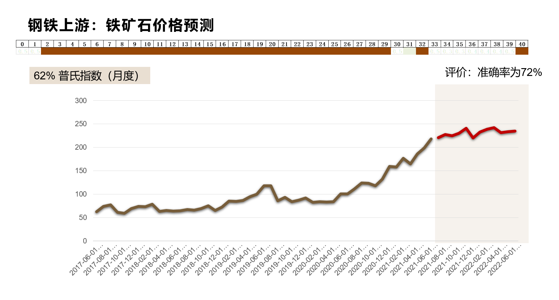 崔煜展示了其研究模型對鋼鐵行業(yè)上下游一些指標(biāo)的預(yù)測結(jié)果。部分結(jié)果如下圖: