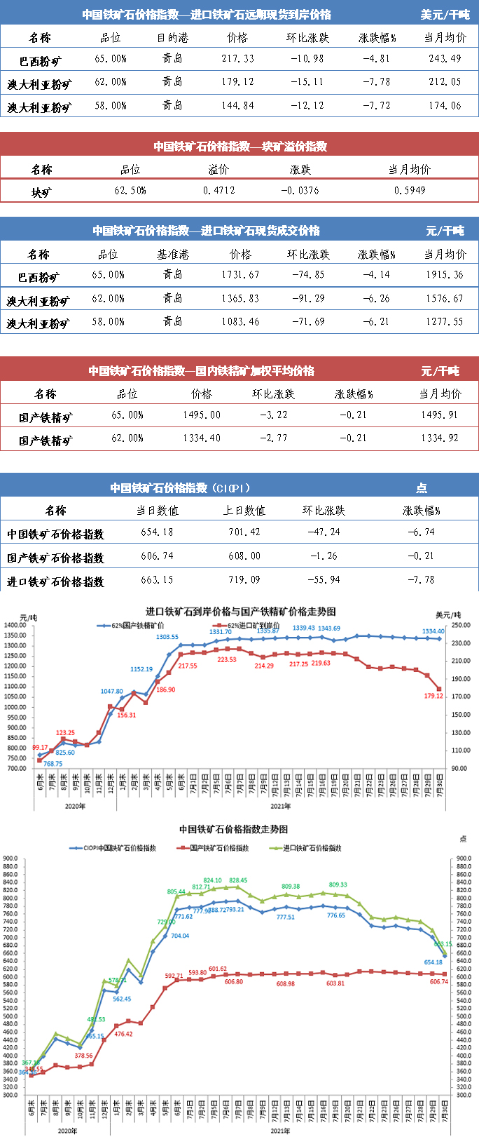 【行業(yè)指數(shù)】7月30日中國(guó)鐵礦石價(jià)格指數(shù)