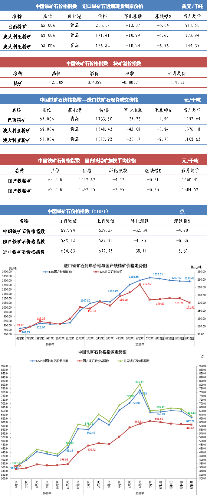 【行業指數】8月5日中國鐵礦石價格指數