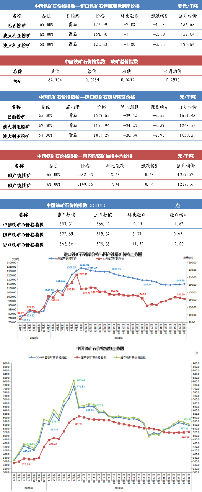 【行業(yè)指數(shù)】8月31日中國(guó)鐵礦石價(jià)格指數(shù)