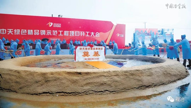2020年8月28日,中天鋼鐵舉行中天綠色精品鋼示范工程項(xiàng)目奠基儀式。據(jù)悉,該項(xiàng)目總投資約1000億元,規(guī)劃鋼鐵產(chǎn)能2000萬噸,其中一期規(guī)劃約800萬噸。項(xiàng)目建成達(dá)產(chǎn)后,勞動生產(chǎn)率達(dá)到2000噸/人·年,每年可實(shí)現(xiàn)營業(yè)收入超千億元,帶動約8萬人就業(yè)。圖為奠基現(xiàn)場。(顧學(xué)超 攝)