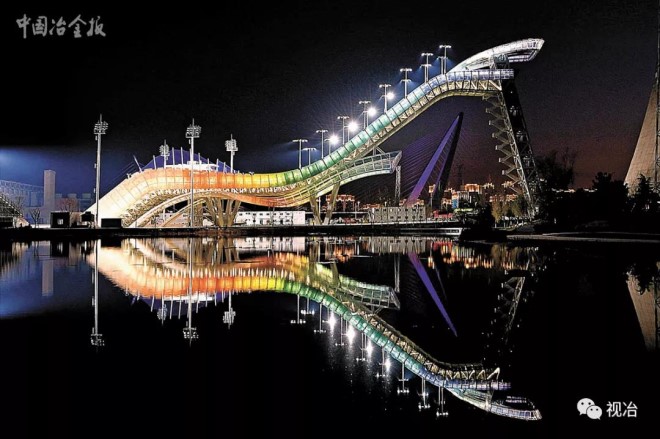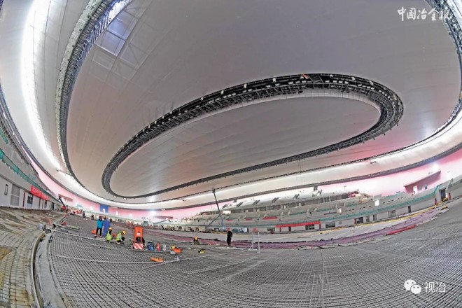 在2022年北京冬奧會場館建設(shè)中,太鋼不銹鋼管、不銹螺紋鋼筋、L型和C型不銹鋼板等3類產(chǎn)品,參與了國家速滑館的建設(shè)。作為北京冬奧會北京賽區(qū)首個建成的新比賽場館,首鋼滑雪大跳臺是冬奧歷史上首個永久保留和使用的同類比賽場地。上圖為2020年10月15日,工程建設(shè)者們正在國家速滑館內(nèi)地面鋪設(shè)太鋼不銹鋼新產(chǎn)品。(王旭宏攝)下圖為首鋼滑雪大跳臺夜景。( 孫力 攝)