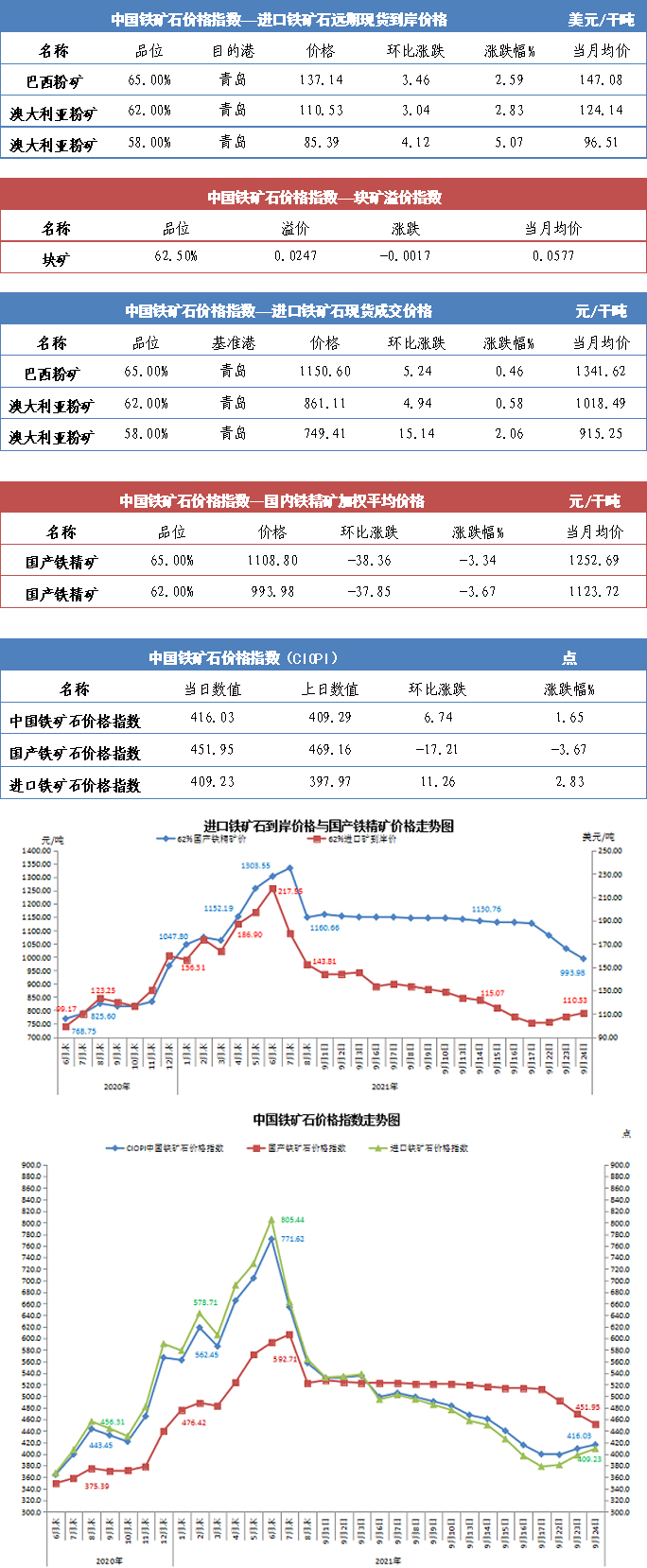 【行業指數】9月24日中國鐵礦石價格指數