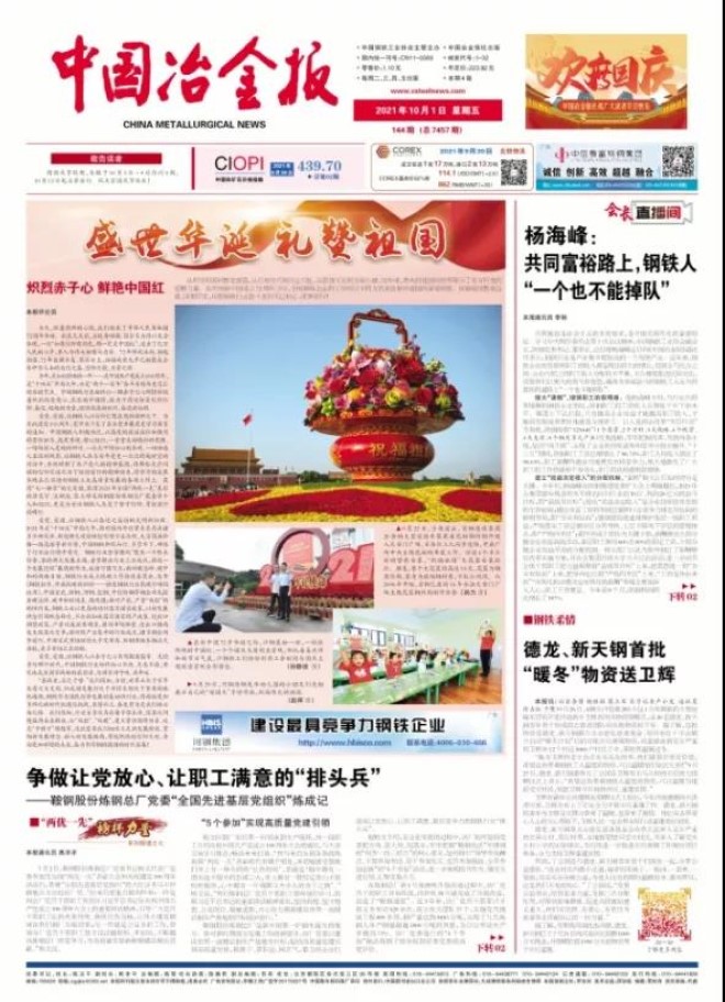 愛黨、愛國,讓鋼鐵人以奮進(jìn)之姿揚帆光明新征程。2021年是“十四五”開局之年,面對國內(nèi)外經(jīng)貿(mào)關(guān)系存在諸多不確定性、新冠肺炎疫情防控形勢不容樂觀、大宗商品價格一路高漲等新形勢,中國鋼鐵御風(fēng)而行、多管齊下,確保了行業(yè)運行穩(wěn)中有進(jìn)。鋼鐵行業(yè)緊密圍繞“聚焦一個根本任務(wù),堅持兩大發(fā)展主題,著重解決行業(yè)三大痛點,推進(jìn)一個發(fā)展進(jìn)程”展現(xiàn)新作為,成績可圈可點:面對碳達(dá)峰、碳中和的戰(zhàn)略目標(biāo),鋼鐵行業(yè)成立低碳工作推進(jìn)委員會,發(fā)布《鋼鐵擔(dān)當(dāng),開啟低碳新征程——推進(jìn)鋼鐵行業(yè)低碳行動倡議書》,中國寶武、鞍鋼、河鋼、包鋼、中信特鋼等鋼企率先提出碳達(dá)峰、碳中和時間表、路線圖;面對產(chǎn)能、產(chǎn)量“雙控”的剛性約束,鋼鐵工業(yè)以更高的站位落實國家政策,以新發(fā)展理念引領(lǐng)觀念轉(zhuǎn)變,不打折扣地落實國家限產(chǎn)政策、進(jìn)出口調(diào)整政策,產(chǎn)量壓減效果明顯,推動市場供需、進(jìn)出口格局發(fā)生深層次變革;面對促產(chǎn)業(yè)集中的行業(yè)痛點,諸多鋼企闊步前行,中國寶武重組繼續(xù)大手筆布局、鞍鋼重組本鋼正式啟航,更多重組正在醞釀。