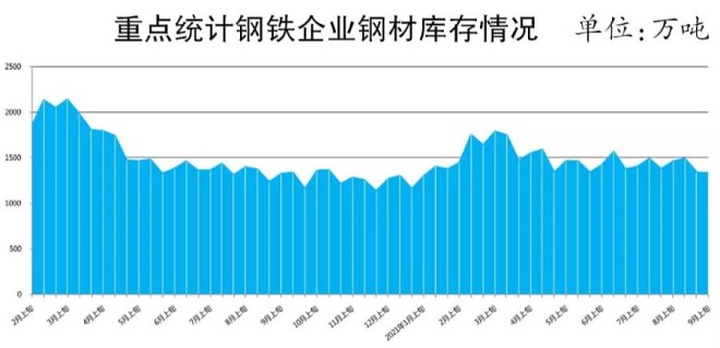 9月上旬,重點(diǎn)統(tǒng)計(jì)鋼鐵企業(yè)鋼材庫存量為1332.38萬噸,比上一旬減少10.33萬噸,降低0.77%;比8月底減少10.33萬噸,降低0.77%;比年初增加170.28萬噸,增長14.65%;同比增加5.38萬噸,增長0.41%。