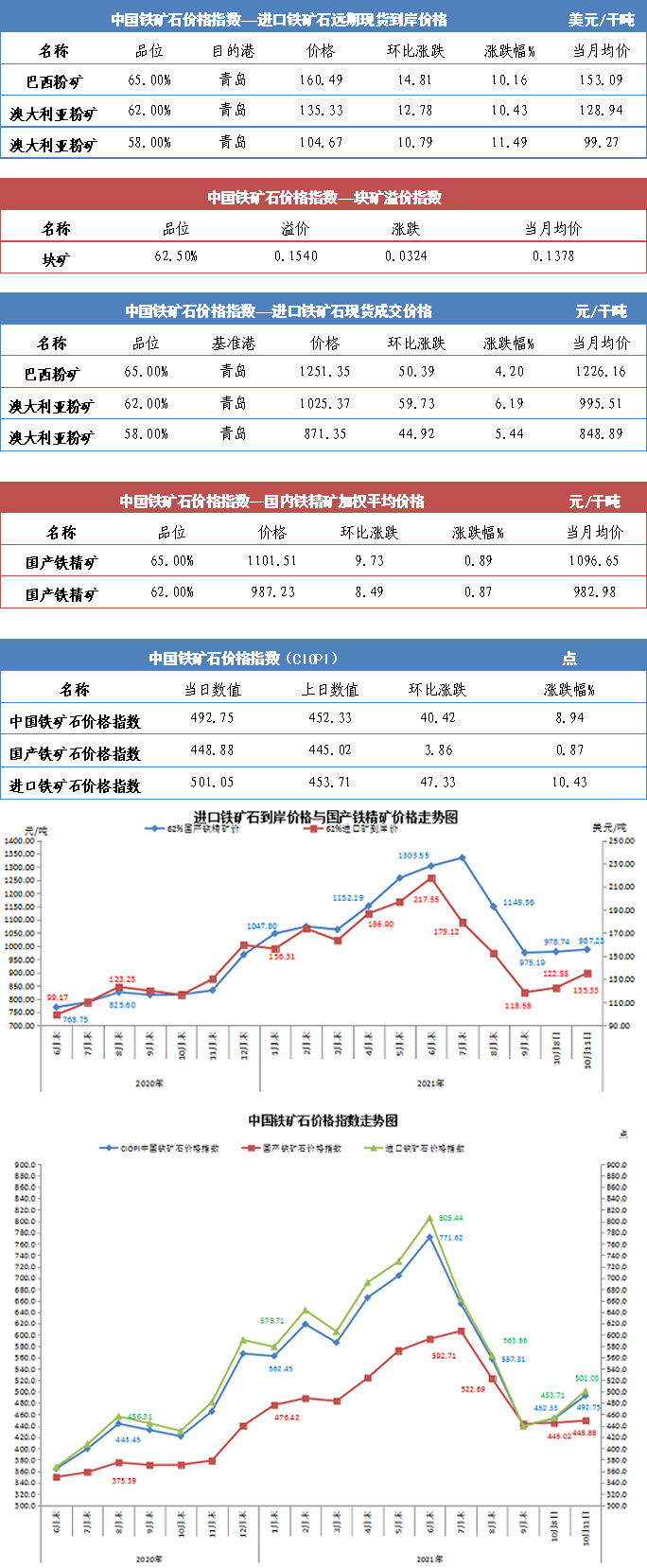 【行業指數】10月11日中國鐵礦石價格指數