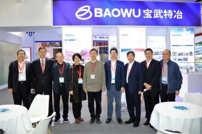 巡展的部分領(lǐng)導(dǎo)嘉賓在寶武特冶展臺參觀合影