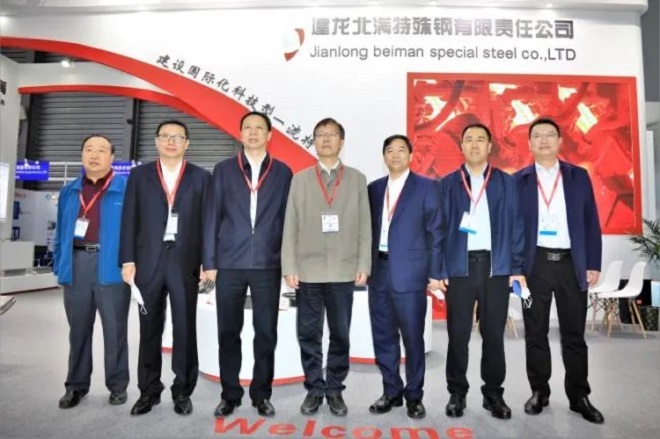 巡展的部分領(lǐng)導(dǎo)嘉賓在建龍北滿特鋼展臺參觀合影