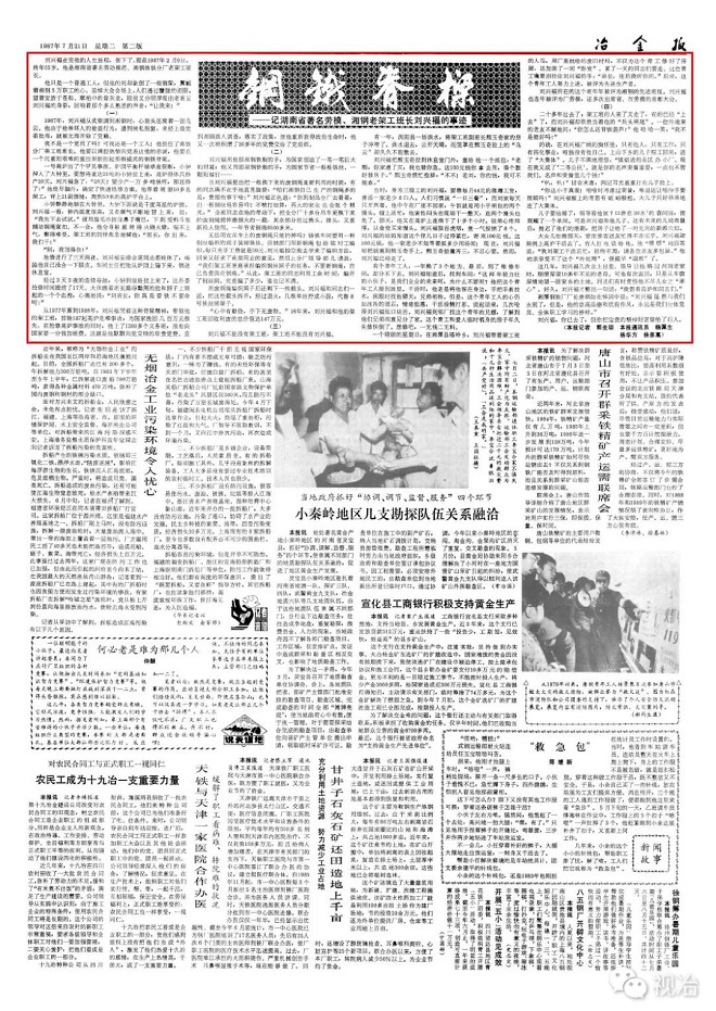 ▲1987年7月21日《冶金報》刊發(fā)的《鋼鐵脊梁——記湖南省著名勞模、湘鋼老架工班長劉興福的事跡》的報道