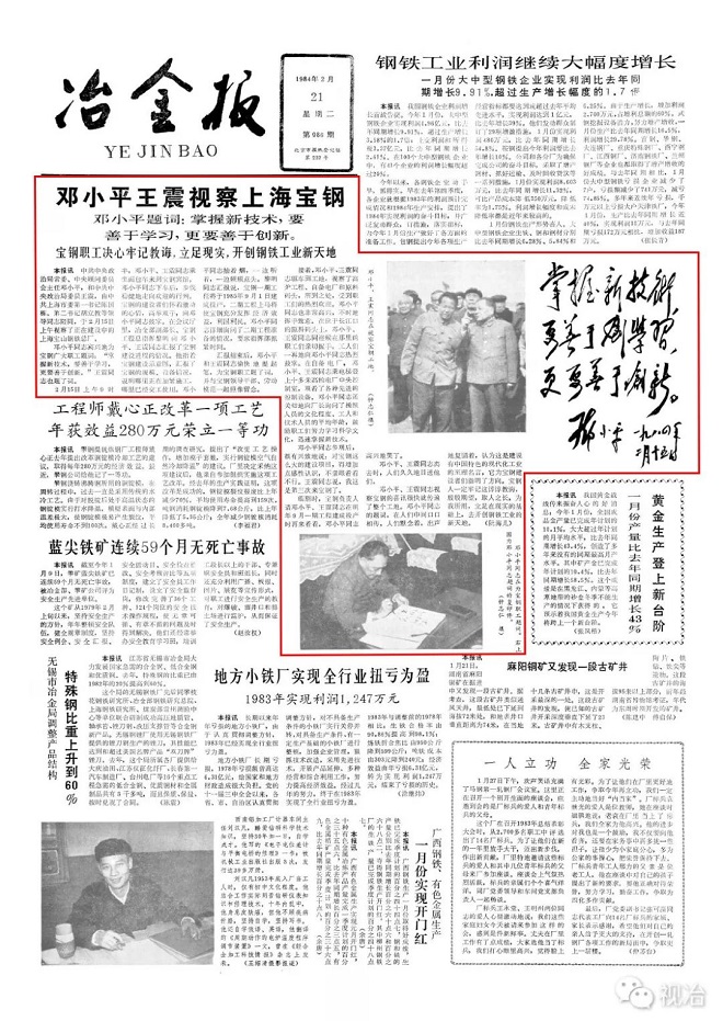 ▲1984年2月21日《冶金報》刊發(fā)的鄧小平視察寶鋼并題詞的報道