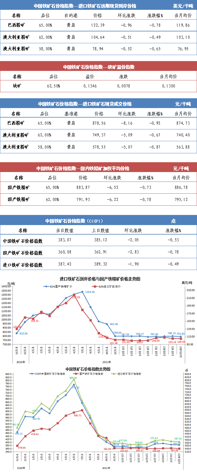 【行業(yè)指數(shù)】12月10日中國(guó)鐵礦石價(jià)格指數(shù)