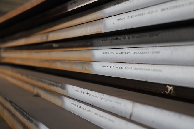 品種:普陽鋼鐵形成了以NM360、NM400、NM450、NM500等級別為主的低合金高強度中厚板耐磨鋼產品系列,具備批量生產厚度在6毫米~80毫米、寬度在1600毫米~3200毫米所有規格鋼板的能力。