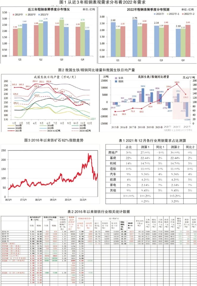 目前市場對于2022年行業(yè)運(yùn)行發(fā)展的主要關(guān)注點(diǎn)在于:一是2021年下半年減產(chǎn)成效顯著,2022年是否能鞏固這一成果?二是鋼鐵行業(yè)能否精準(zhǔn)把握商品供需基本面及行業(yè)發(fā)展規(guī)律,抓住市場機(jī)遇提質(zhì)增效,提升行業(yè)在產(chǎn)業(yè)價(jià)值鏈上的地位?三是后疫情時(shí)代耐用品消費(fèi)終將退潮,2022年我國將在房地產(chǎn)、基建等傳統(tǒng)鋼鐵消費(fèi)領(lǐng)域釋放多大的穩(wěn)增長力度?