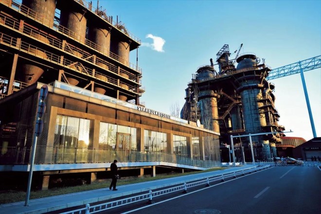 時(shí)間回溯到10多年前。為了首都的碧水藍(lán)天,為了2008年北京奧運(yùn)會(huì),首鋼率先進(jìn)行中國(guó)乃至世界工業(yè)史上前所未有的戰(zhàn)略性搬遷調(diào)整,完成從“山”到“?!钡目缭?,成為我國(guó)第一個(gè)向沿海搬遷的大型鋼鐵企業(yè),成為京津冀協(xié)同發(fā)展的先鋒隊(duì)。彼時(shí),失去了支柱產(chǎn)業(yè)的石景山區(qū)面臨著產(chǎn)業(yè)轉(zhuǎn)型的難題,而歷史性的停產(chǎn)也讓人們對(duì)首鋼這座有著百年積淀的老廠區(qū)畫出了一串問號(hào):園區(qū)內(nèi)豐厚的工業(yè)資源怎么辦?是留存,還是拆除?沒有了鋼鐵,那些貯水池、冷卻塔、筒料倉是否還有用武之地?停產(chǎn)了的老廠區(qū)又如何再現(xiàn)勃勃生機(jī)?
