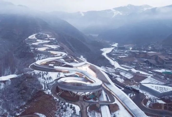 國家雪車雪橇中心又稱為“雪游龍”,是我國第一條、也是唯一一條符合冬奧會標準的雪車雪橇賽道,將作為北京冬奧會雪車、雪橇、鋼架雪車項目的比賽場地。國家雪車雪橇中心用地面積達18.69公頃,建筑面積達5.25萬平方米,構筑物面積達2.15萬平方米,場內設施主要包括出發區、運營區、結束區和賽道等。