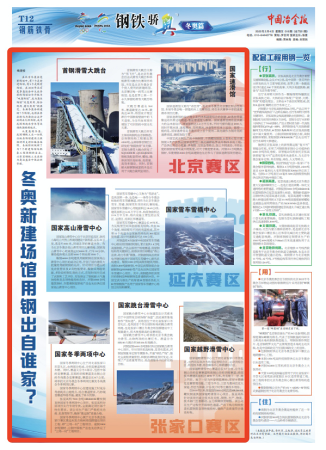 河鋼連續4次獨家中標國家雪車雪橇中心相關項目鋼材供貨權,累計直供1.4萬噸高強鋼筋,產品全部用于場地賽道、房屋鋼結構等關鍵部位,獲得該項目部贈送“燕山品質,助力冬奧”錦旗。河鋼唐鋼高品質家電用鍍鋅板用于國家雪車雪橇中心新風系統建設。鞍鋼1000余噸高級別建筑用鋼、南鋼1200噸耐候鋼、中國寶武鄂鋼低合金耐候鋼Q355NHD等產品先后供應國家雪車雪橇中心項目。其中,南鋼提供給該項目的鋼材品種耐候性是普通鋼的8倍。中國寶武馬鋼生產的厚重H型鋼系熱軋大H型鋼極限產品用于國家雪車雪橇中心場館立柱結構橫梁。