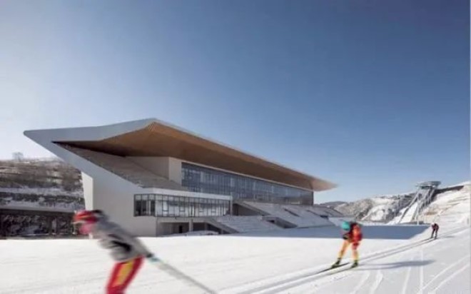 國家越野滑雪中心賽道總長9.7公里,分為東側山谷的競賽賽道和南側山谷的訓練賽道;場館技術樓建筑面積達4890平方米,共有地下一層、地上四層。地下一層為興奮劑監測站,首層主要滿足競賽管理功能,二層為平臺,三層為奧林匹克大家庭,四層為仲裁、計分及計時等比賽技術用房。
