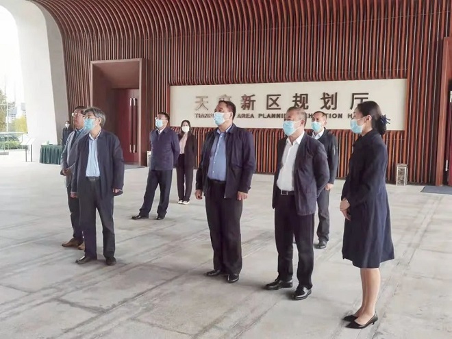 圖為調(diào)研組一行在四川成都天府新區(qū)調(diào)研,觀看城區(qū)規(guī)劃布局介紹。