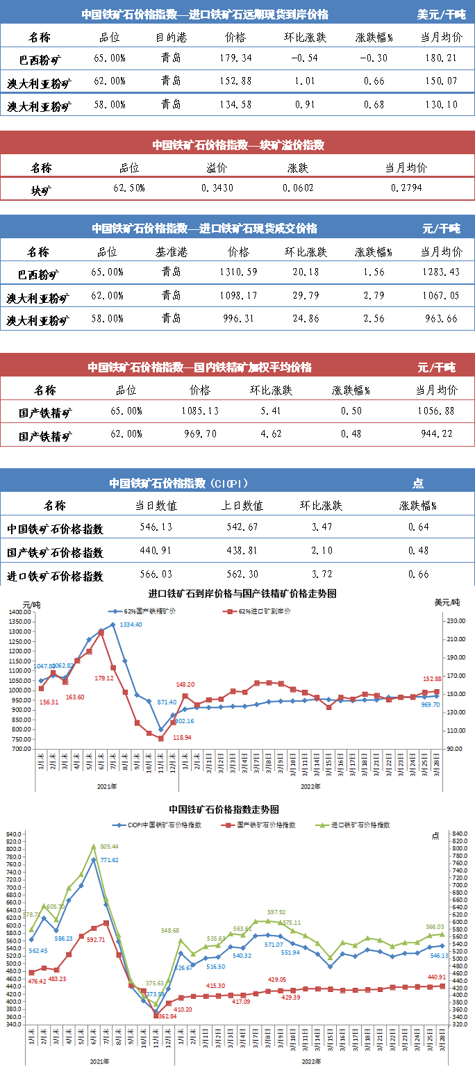 【行業(yè)指數(shù)】3月28日中國(guó)鐵礦石價(jià)格指數(shù)