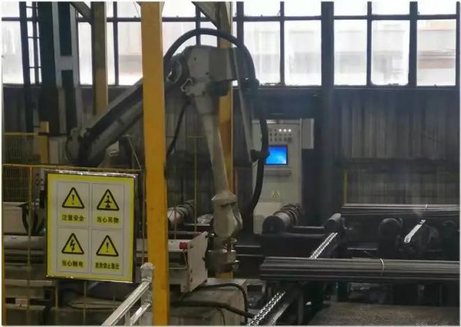 智能制造是為解決生產(chǎn)經(jīng)營(yíng)過(guò)程中的疑難問(wèn)題和瓶頸問(wèn)題的,是為企業(yè)創(chuàng)造效益的,陜鋼龍鋼公司將智能制造融入生產(chǎn)經(jīng)營(yíng)的方方面面,以問(wèn)題為導(dǎo)向,最大化提高效益,打造國(guó)內(nèi)一流鋼廠。近年來(lái),龍鋼公司引進(jìn)工業(yè)機(jī)器人,代替人工完成3D(臟Dirty、累Difficult、險(xiǎn)Dangerous)作業(yè),利用機(jī)器人和人工智能技術(shù)實(shí)現(xiàn)450㎡燒結(jié)的機(jī)器人臺(tái)車自動(dòng)加油、煉鋼大包機(jī)器人拆卸油缸、混鐵爐機(jī)器人測(cè)溫取樣、棒材機(jī)器人取樣等,以機(jī)器代替人工,解放勞動(dòng)力、提高職工作業(yè)環(huán)境、減少安全事故發(fā)生、提高效益。其中臺(tái)車自動(dòng)加油、棒材自動(dòng)取樣、標(biāo)識(shí)解析智能打碼賦碼等項(xiàng)目的實(shí)現(xiàn)均為國(guó)內(nèi)首創(chuàng)。