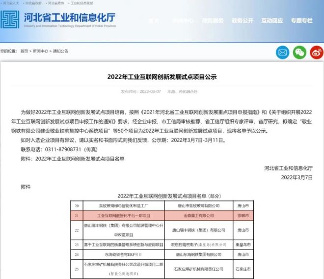 好雨知時節(jié),捷報頻相傳。2022年3月,河北省工業(yè)和信息化廳發(fā)布公示,50個項目為2022年工業(yè)互聯(lián)網(wǎng)創(chuàng)新發(fā)展試點項目,其中金鼎鋼鐵集團(tuán)有限公司(以下簡稱金鼎鋼鐵集團(tuán))《工業(yè)互聯(lián)網(wǎng)數(shù)智化平臺一期項目》獲此殊榮。