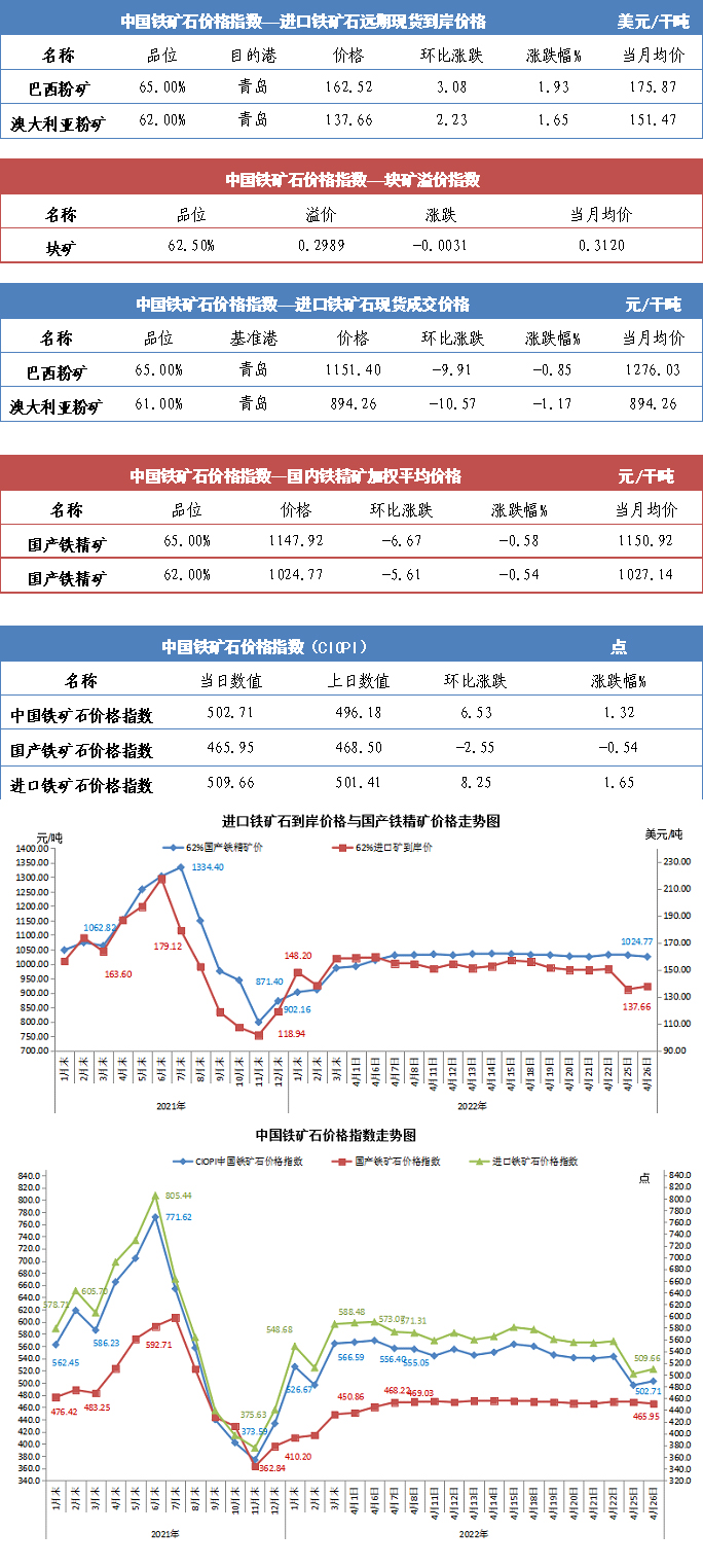 【行業(yè)指數(shù)】4月26日中國鐵礦石價格指數(shù)