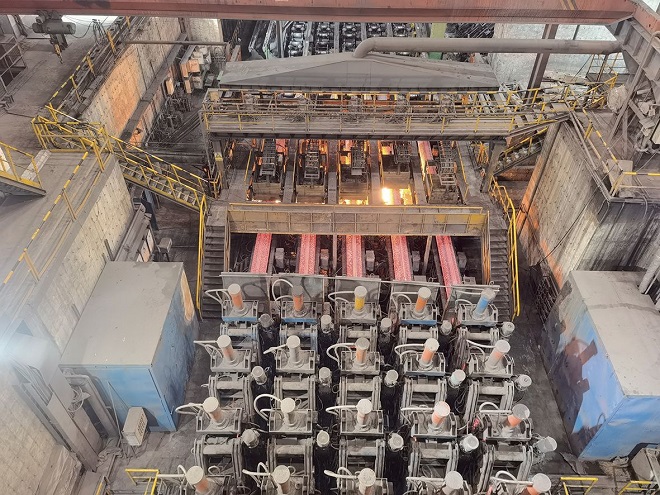 圖為承德建龍風電變槳用600規格連鑄圓坯下冷床實貌。 (承德建龍供圖)