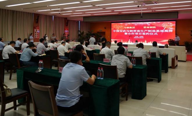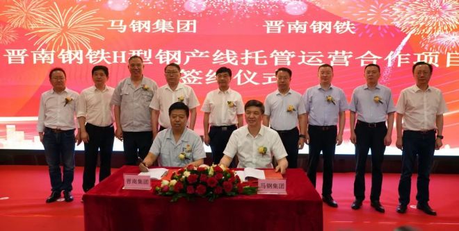 在與會領(lǐng)導(dǎo)共同見證下,馬鋼集團(tuán)黨委書記、董事長,馬鋼股份黨委書記、董事長丁毅與臨汾市委常委、副市長崔元斌共同為“中國寶武馬鋼晉南生產(chǎn)制造基地”揭牌;任天寶與張?zhí)旄7謩e代表馬鋼集團(tuán)與晉南鋼鐵集團(tuán)簽訂《H型鋼產(chǎn)線托管運營合作協(xié)議》;與會領(lǐng)導(dǎo)還觀看晉南鋼鐵集團(tuán)三期翼城基地項目規(guī)劃匯報片。