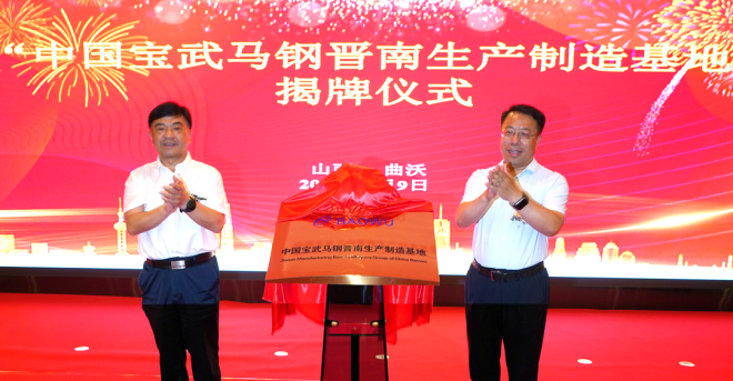 圖為丁毅(左)與崔元斌(右)共同為“中國寶武馬鋼晉南生產(chǎn)制造基地”揭牌