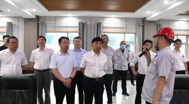 圖為丁毅一行在市、縣領(lǐng)導(dǎo)和晉南鋼鐵集團(tuán)領(lǐng)導(dǎo)的陪同下參觀晉南鋼鐵