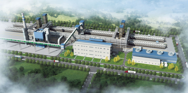 圖為由賽迪熱工環保承建的河南安鋼周口鋼鐵有限責任公司熱回收煉焦配套余熱發電工程效果圖。