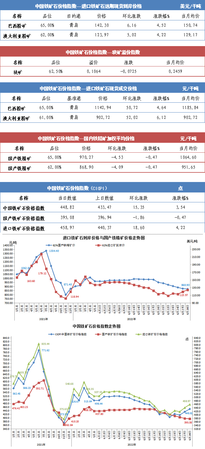 【行業(yè)指數(shù)】6月28日中國鐵礦石價格指數(shù)