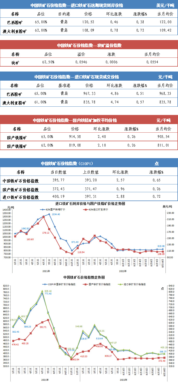 【行業(yè)指數(shù)】8月10日中國(guó)鐵礦石價(jià)格指數(shù)