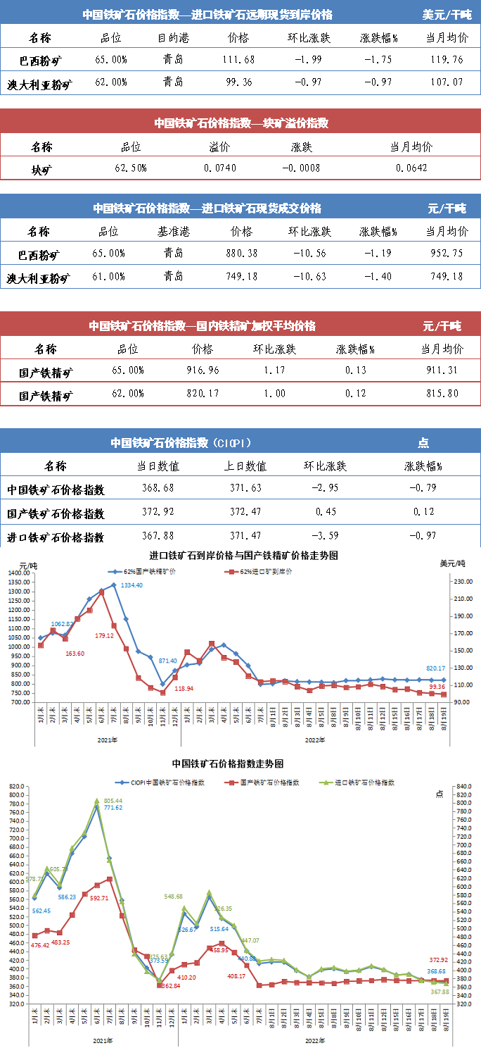 【行業(yè)指數(shù)】8月19日中國鐵礦石價格指數(shù)