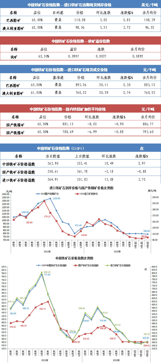 【行業(yè)指數(shù)】9月5日中國鐵礦石價(jià)格指數(shù)