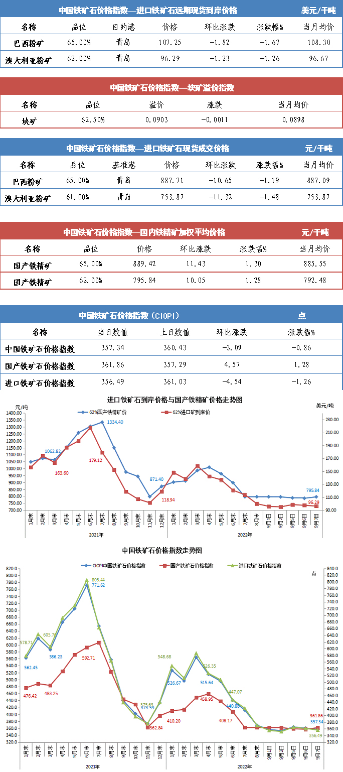 【行業(yè)指數(shù)】9月7日中國鐵礦石價格指數(shù)