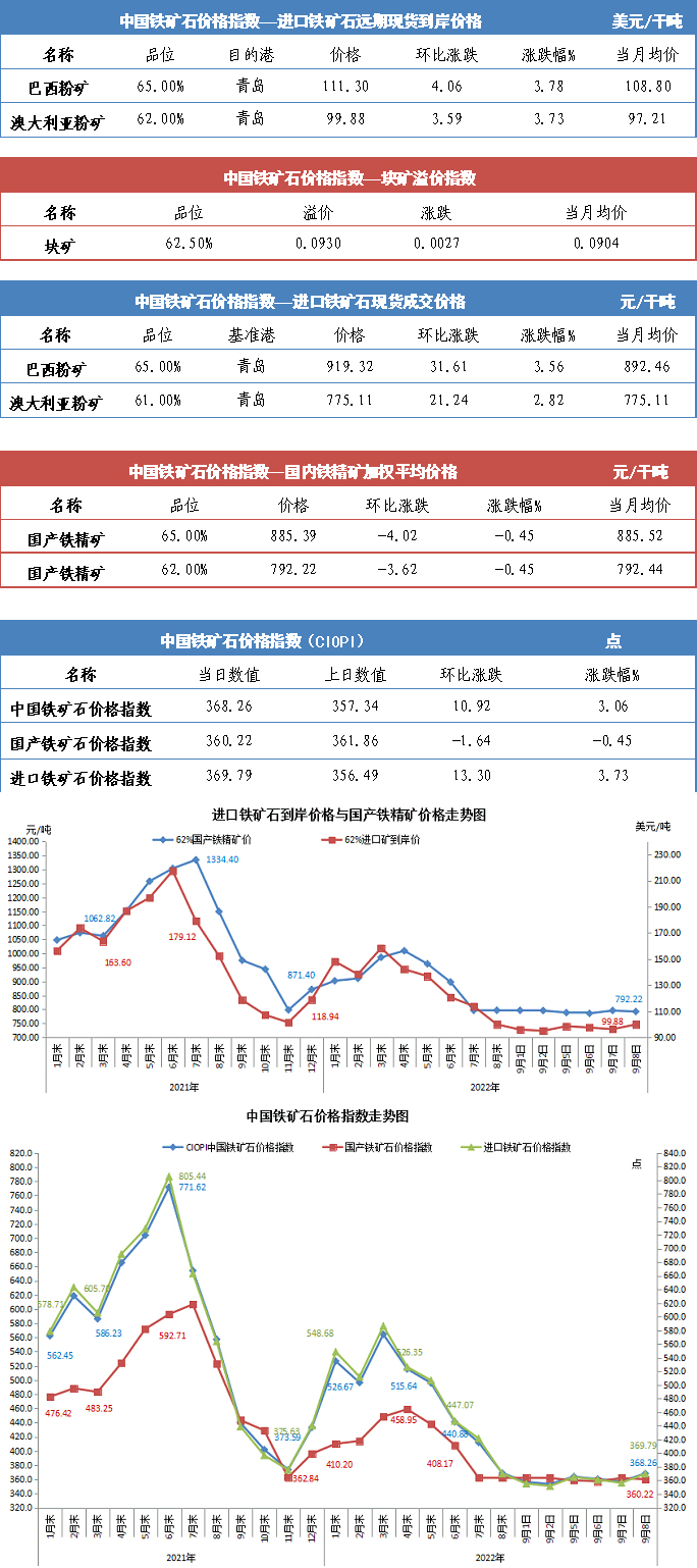 【行業(yè)指數(shù)】9月8日中國(guó)鐵礦石價(jià)格指數(shù)