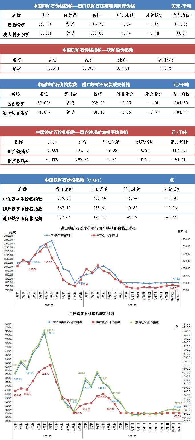 【行業(yè)指數(shù)】9月14日中國鐵礦石價(jià)格指數(shù)