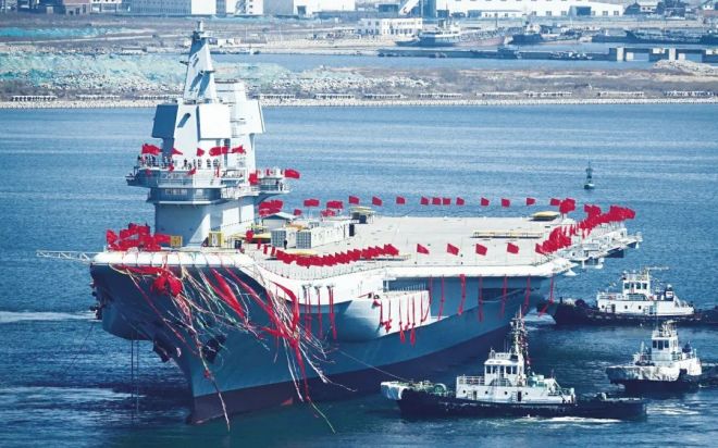 圖為2017年4月份,我國首艘國產航母順利下水。(特約通訊員 劉德斌 攝)