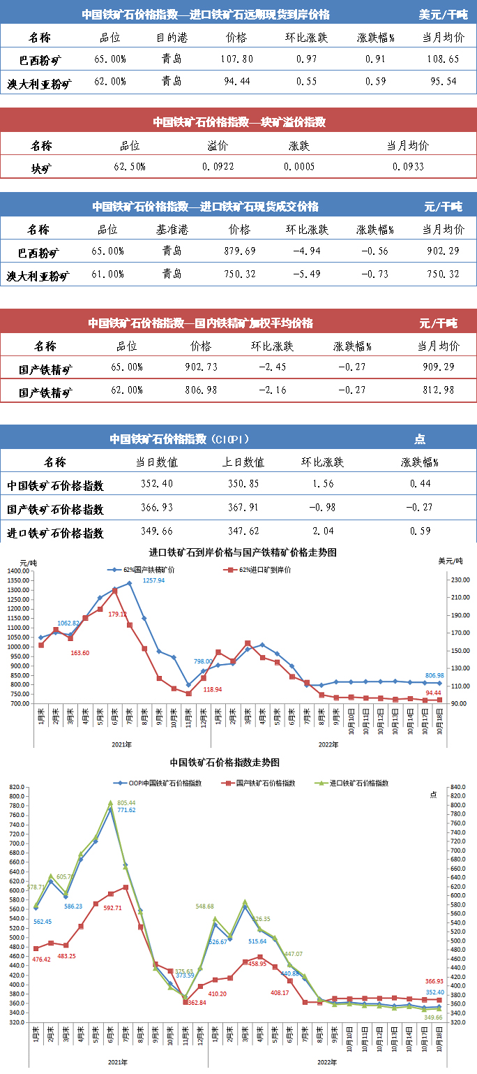 【行業(yè)指數(shù)】10月18日中國鐵礦石價格指數(shù)