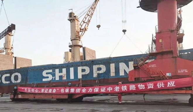 圖為2019年包鋼首批6055噸優質重軌完成裝船,準備運往中老鐵路工程建設現場。(本報資料圖片)
