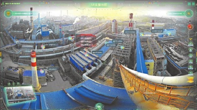 圖為山鋼萊蕪分公司煉鐵廠3800立方米高爐鷹眼拍攝。(馮峰 供圖)